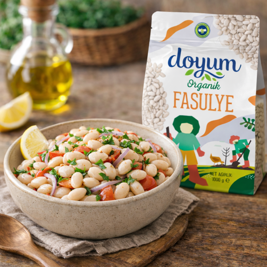 Doyum Organik Kuru Fasulye, doğal üretim süreçlerinden elde edilen kaliteli bakliyatlardan oluşur. Organik fasulye kullanılarak hazırlanan piyaz, hem lezzetli hem de sağlıklı bir alternatif sunar.